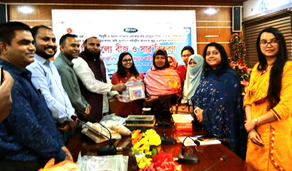 পরে উপজেলার দুই ইউনিয়নের প্রান্তিক কৃষকদের মাঝে সবজি ও সরিষা বীজ বিতরণ করা হয়।