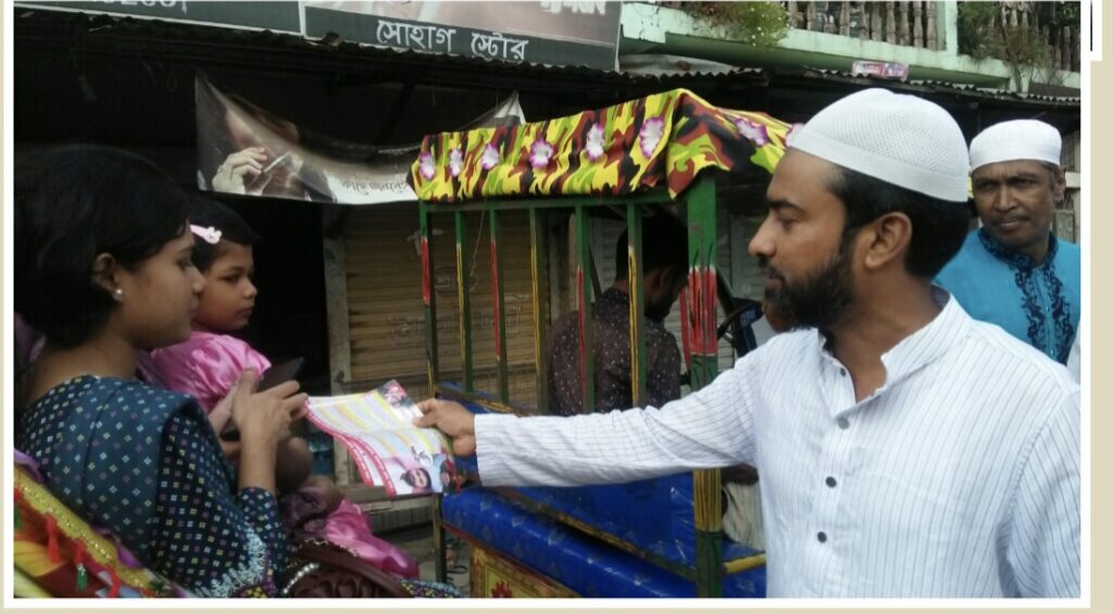 ৩১ অক্টোবর শুক্রবার বাদ জুম্মা শহরের অন্তর্গত বিভিন্ন মহল্লার মসজিদে জুম্মার নামাজ পড়ে বের হওয়া মুসুল্লিদের ও সড়কের দু’ধারে বিভিন্ন ব্যাবসায়ী প্রতিষ্ঠান ও পথচারী জনসাধারণ মানুষের মাঝে এই লিফলেট বিতরণ করা হয়।।লিফলেট বিতরণ শেষে স্হানীয় আজাদ ডাক্তার মোড়ে এসে সংক্ষিপ্ত আলোচনা সভার মধ্যে দিয়ে শেষ হয়।