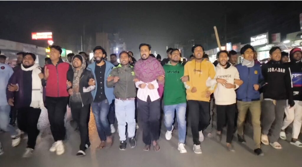 বুধবার রাতে স্থানীয় ফুলবাড়িয়া ঈদগাঁ মাঠ থেকে বিক্ষোভ মিছিল বের হয়ে শহর পদক্ষিন শেষে দয়াময়ী চত্বরে গিয়ে শেষ হয়। এ সময় ছাত্রদলের নেতা-কর্মীরা দয়াময়ী চত্বরে টায়ার জালিয়ে সড়কের উপর বিক্ষোভ করে।