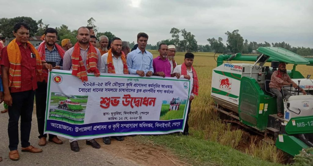 ঝিনাইগাতী প্রতিনিধ : শেরপুরের ঝিনাইগাতীতে ২০২৪-২০২৫ রবি মৌসুমে কৃষি প্রণোদনা কর্মসূচির আওতায় সমলয় পদ্ধতিতে বোরো ধান চাষাবাদের ব্লক প্রদর্শনীর ফসল কর্তনের উদ্বোধন করা হয়েছে।