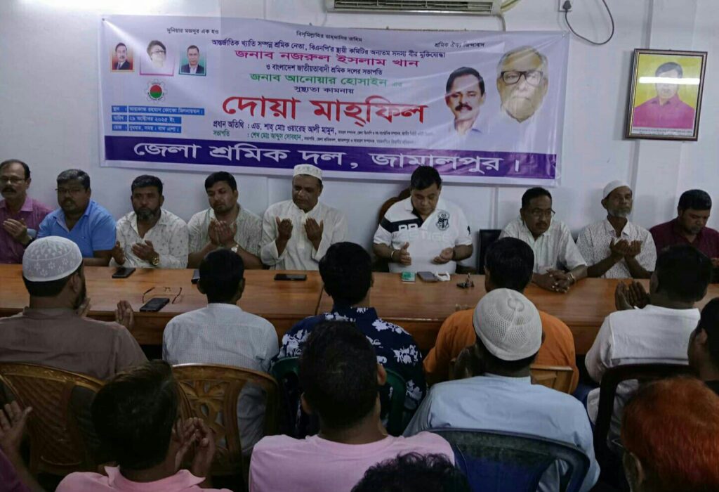জামালপুর প্রতিনিধি : বাংলাদেশ জাতীয়তাবাদী দল বিএনপির স্থায়ী কমিটির অন্যতম সদস্য বীর মুক্তিযোদ্ধা নজরুল ইসলাম খান ও জাতীয়তাবাদী শ্রমিক দলের সভাপতি আনোয়ার হোসাইনের সুস্থতা কামনায় জামালপুর জেলা শ্রমিক দলের উদ্যোগে দোয়া মাহফিল অনুষ্ঠিত হয়েছে।