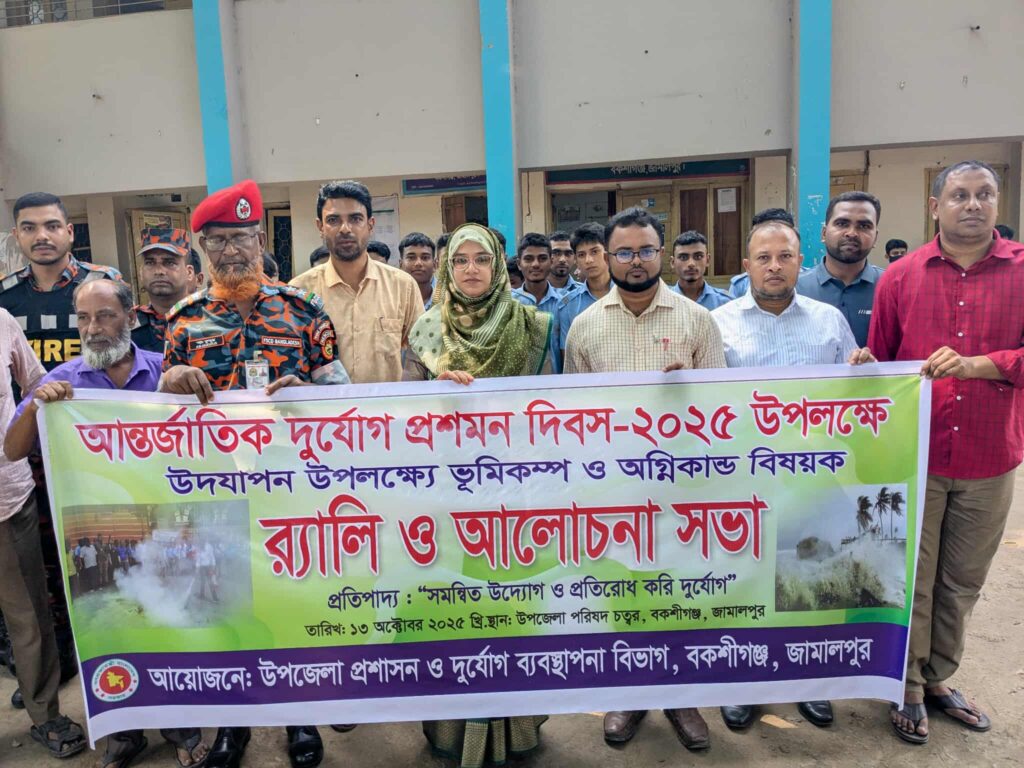 দিবসটি উপলক্ষে সকালে উপজেলা পরিষদ চত্বর থেকে একটি বর্ণাঢ্য র্যালি বের করা হয়। র্যালিটি উপজেলার প্রধান প্রধান সড়ক প্রদক্ষিণ শেষে পুনরায় উপজেলা চত্বরে এসে শেষ হয়।পরে উপজেলা চত্বরে ফায়ার সার্ভিস ও সিভিল ডিফেন্সের সদস্যরা জনসচেতনতা বৃদ্ধির লক্ষ্যে বিভিন্ন মহড়া ও প্রদর্শনী উপস্থাপন করেন। এসব প্রদর্শনীতে দুর্যোগের সময় তাৎক্ষণিক প্রতিক্রিয়া ও উদ্ধারকাজের প্রস্তুতি বিষয়ক নানা দিক তুলে ধরা হয়।পরে উপজেলা পরিষদ মিলনায়তনে আয়োজিত আলোচনা সভায় সহকারি কমিশনার ভূমি আসমা -উল- হুসনা সভাপতিত্বে, উপজেলা প্রকল্প বাস্তবায়ন কর্মকর্তা হাবীবুর রহমান সুমনের সঞ্চালনায় বক্তব্য রাখেন ফায়ার সার্ভিসের স্টেশন অফিসার আব্দুল কুদ্দুস, বকশীগঞ্জ সদর ইউনিয়নের প্যানেল চেয়ারম্যান মির্জা সোহেল, সাংবাদিক আশরাফুল হায়দার, জিএম সাফিউর রহমান মেজর, জি এম ফাতিউল ইসলাম বাবু, সাংবাদিক রাশেদুল ইসলাম রনি, সাংবািদক ইমরান সরকার প্রমুখ।দিবসটি উপলক্ষে আয়োজিত কর্মসূচিতে বিভিন্ন সরকারি দপ্তরের কর্মকর্তা,শিক্ষার্থী, জনপ্রতিনিধি ও সাধারণ মানুষ অংশগ্রহণ করেন।