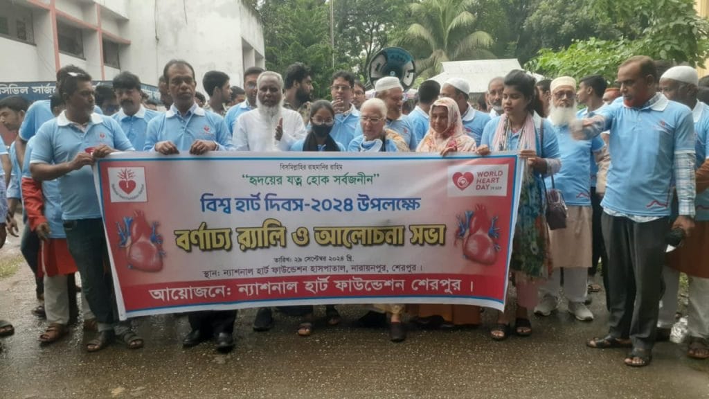শোভাযাত্রার উদ্বোধন করেন শেরপুরের সিভিল সার্জন ডাঃ মোহাম্মদ জসীম উদ্দিন। এসময় বক্তব্য রাখেন ফাউন্ডেশনের সভাপতি রাজিয়া সামাদ। এসময় বক্তারা তাদের বক্তব্যে বলেন, অসংক্রামক রোগের অন্যতম হৃদরোগ। দেশে হৃদরোগ চিকিৎসায় উন্নতি হলেও এখনো রাজধানীর জাতীয় হৃদরোগ ইনস্টিটিউট ও হাসপাতাল দেশের রোগীদের একমাত্র ভরসা। যেখানে দেশের ৮০ ভাগ রোগীর চিকিৎসা হয়ে থাকে। ঢাকার বাইরে সরকারিভাবে শুধুমাত্র একটি মেডিক্যাল কলেজ এবং বেসরকারিভাবে চারটি হাসপাতালে কার্ডিয়াক সার্জারির ব্যবস্থা রয়েছে। ফলে সঠিক সময়ে ব্যয়বহুল এই চিকিৎসা না পাওয়াসহ নানা কারণে প্রতি বছর পৌনে ৩ লাখ (২ লাখ ৭৩ হাজার) মানুষ হৃদরোগে আক্রান্ত হয়ে মারা যান।
