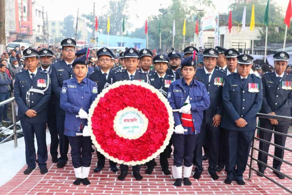 জেলা পুলিশ, শেরপুর কর্তৃক মহান বিজয় দিবস ২০২৪ বিনম্র শ্রদ্ধা, যথাযথ মর্যাদা ও পূর্ণ ভাবগাম্ভীর্যের মধ্য দিয়ে পালন করা হয়েছে। শেরপুরে ১৬ ডিসেম্বর ভোরে জাতীয় পতাকা উত্তোল ও ৩১ বার তোপধ্বনির মাধ্যমে দিবসের সূচনা ঘটে।