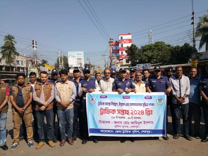 শেরপুর জেলা ট্রাফিক পুলিশের আয়োজনে জেলা বাস মিনিবাস মালিক সমিতি ও চালক শ্রমিক ইউনিয়ন এবং শেরপুর জেলা ট্রাক মিনিট্রাক, ড্রাম ট্রাক ও কভার্ডভ্যান চালক শ্রমিক ইউনিয়নের নেতৃবৃন্দদের অংশগ্রহণে ১০ নভেম্বর থেকে ১৬ নভেম্বর সপ্তাহব্যাপী ট্রাফিক ব্যবস্থা নিয়ন্ত্রণ, উন্নয়ন এবং জনসচেতনতা বৃদ্ধির লক্ষ্যে নিয়ে ট্রাফিক সপ্তাহের উদ্বোধন করেন পুলিশ সুপার মোঃ আমিনুল ইসলাম।