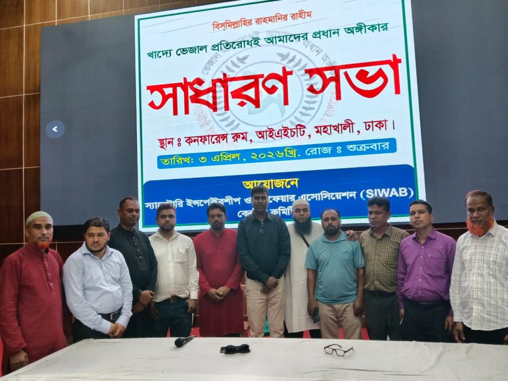 জামালপুর প্রতিনিধি : স্যানিটারী ইন্সপেক্টর ওয়েলফেয়ার এসোসিয়েশন অব বাংলাদেশ (এসআইডব্লিউএবি) এর আহসান হাবীব জিলানী জুয়েলকে আহ্বায়ক করে ১১ সদস্যের কেন্দ্রীয় কমিটি গঠিত হয়েছে। শুক্রবার (০৩ মার্চ) রাতে মহাখালীর ঢাকা আইএইচটি অডিটরিয়ামে সংগঠনটির সাধারন সভায় এই কমিটি ঘোষনা করেন সদ্য সাবেক ভারপ্রাপ্ত সভাপতি মজিবুর রহমান উজ্জ্বল।