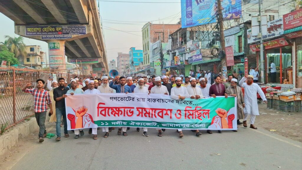 জামালপুরে ১১ দলীয় ঐক্যজোটের বিক্ষোভ মিছিল
