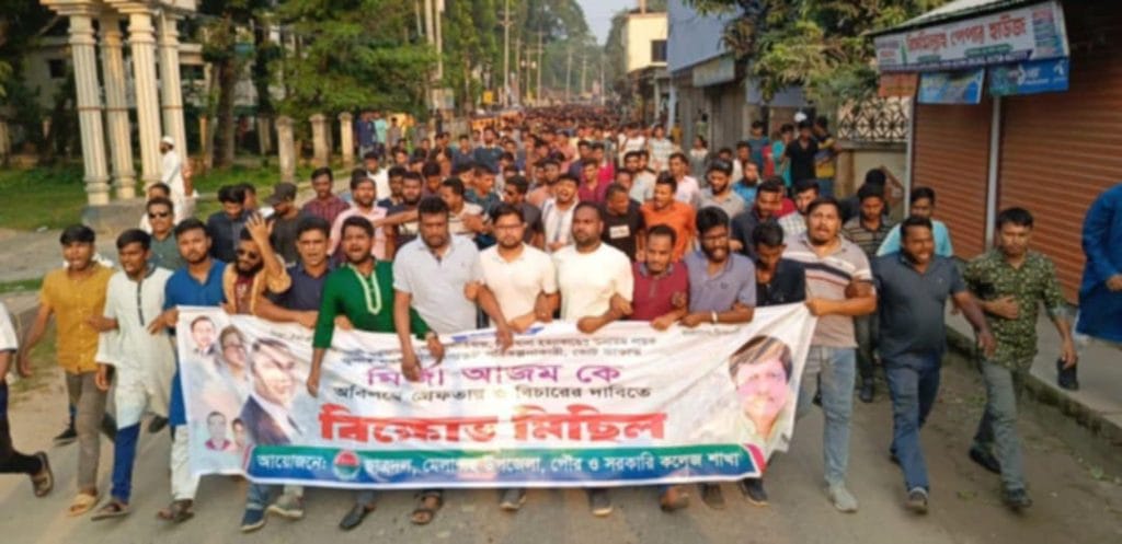 বাংলাদেশ আওয়ামী লীগের সাংগঠনিক সম্পাদক, জামালপুর-৩ আসনের সাবেক সংসদ সদস্য মির্জা আজমের গ্রেপ্তার ও বিচারের দাবিতে বিক্ষোভ মিছিল এবং সমাবেশ অনুষ্ঠিত হয়েছে।