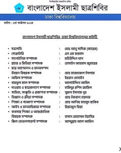 ডেক্স রিপোর্ট দৈনিক জামালপুর বার্তা: বাংলাদেশ ইসলামী ছাত্রশিবিরের ঢাকা বিশ্ববিদ্যালয় (ঢাবি) শাখার সভাপতি সাদিক কায়েম ও সেক্রেটারি জেনারেল এস এম ফরহাদের আত্মপ্রকাশের পর এবার পূর্ণাঙ্গ