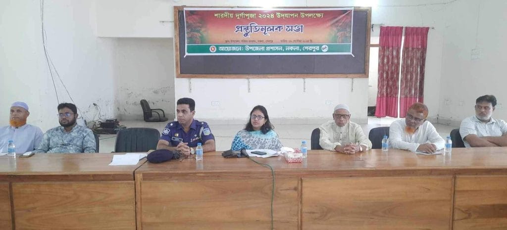শেরপুরের নকলায় আসন্ন শারদীয় দূর্গাপূজা পালন উপলক্ষ্যে প্রস্তুতিমূলক সভা অনুষ্ঠিত হয়েছে।
