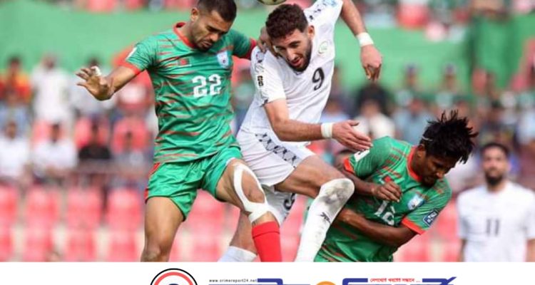ঘরের মাঠে বিশ্বকাপ ও এশিয়ান কাপ যৌথ বাছাইয়ের দ্বিতীয় লেগে ফিলিস্তিনের বিপক্ষে ১-০ গোল ব্যবধানে হেরেছে বাংলাদেশ। ফিলিস্তিনের একাধিক আক্রমণে বিপরীতে বাংলাদেশও বেশ কিছু সুযোগ পেয়েছিল। তবে নিখুঁত ফিনিশিংয়ের অভাবে কাঙ্ক্ষিত গোলের দেখা পায়নি স্বাগতিক দল। আর ইনজুরি টাইমের গোলে বাংলাদেশকে হতাশায় ডুবিয়েছে সফরকারীরা।