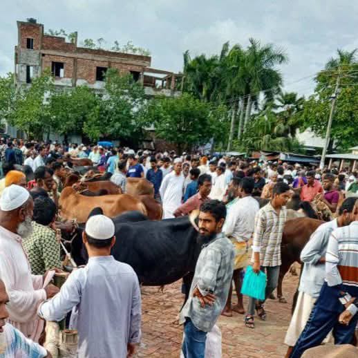 শুক্রবার (৩০ মে) কোরবানি উপলক্ষে ব্যাপক পরিমান গরু, ছাগল, মহিষের সমাগম ঘটেছে। দূর-দূরান্ত থেকে পশু কিনতে এবং বিক্রি করতে লোক সমাগম ঘটেছে।