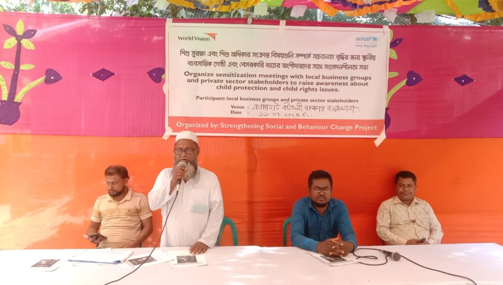 ১১ জুলাই (শুক্রবার) সকাল ১১ ঘটিকায় হলোখানা নয়ারহাট বাজারে ওয়ার্ল্ড ভিশন বাংলাদেশের এসএসবিসি প্রকল্পের স্ট্রেনদেনিং সোশ্যাল এন্ড বিহেভিয়ার চেঞ্জ প্রকল্পের আয়োজনে ও ইউনিসেফের অর্থায়নে এ সভা অনুষ্ঠিত হয়।