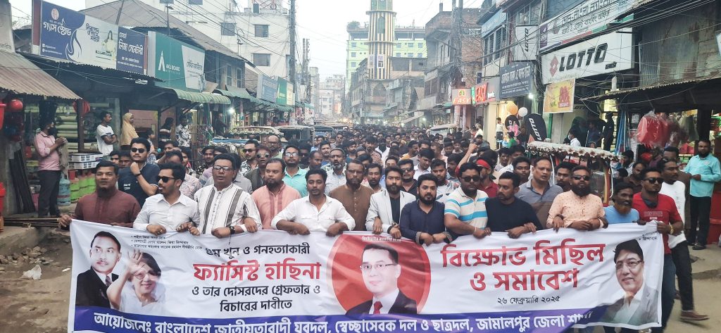 নিজস্ব প্রতিবেদক : গুম, খুন, গণহত্যাকারী ফ্যাসিস্ট হাসিনা ও তার দোসরদের গ্রেপ্তার এবং বিচারের দাবিতে বিক্ষোভ মিছিল ও সমাবেশ অনুষ্ঠিত হয়েছে।