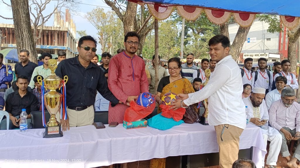 এ সময় আরও উপস্থিত ছিলেন উপাধ্যক্ষ খেলনা রানী দেব ও ফুটবল খেলার আহ্বায়ক জনাব মোঃ শাকের আহমেদ,প্রধান অতিথি হিসাবে উপস্থিত ছিলেন জামালপুর জেলা পুলিশ সপার সৈয়দ রফিকুল ইসলাম (বিপিএম সেবা) সহ প্রশাসনের উদ্ধৃত কর্মকর্তাবৃন্দ, কলেজ ছাত্রদলের যুগ্ন সম্পাদক মো: সরোযার হোসেন, মো: রিপন, মো: আশিক সহ অত্র কলেজ শিক্ষার্থী বৃন্দ।।