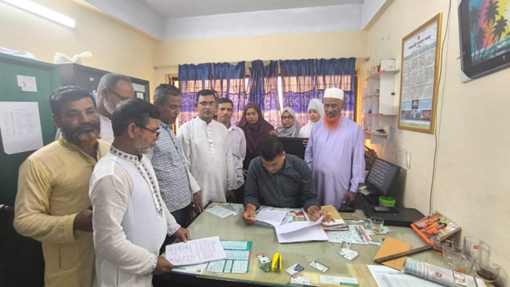 ক্যাপশনঃ জামালপুর সদরের মেস্টা ইউনিয়ন পরিষদের সদস্যরা তাদের চেয়ারম্যানকে অনাস্থা দিতে দেখাগেছে।