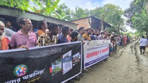 এসময় বক্তারা বলেন, পৌরসভার ১নং ওয়ার্ডের পাথালিয় নাওভাঙ্গা চরের আশ্রায়ন প্রকল্পে ২২০টি পরিবার বসবাস করে এছাড়া আরো ২ শতাধিক পরিবার অত্র এলাকায় মানবেতর জীবন যাপন করছে। সামন্য বৃষ্টি হয়ে এই রাস্তাটি চলাচলের জন্য অনুপযোগী হয়ে দাড়ায়। স্কুল কলেজগামী ছাত্র/ছাত্রীরা বিভিন্ন সমস্যার সমূখিন হয়ে থাকে। তাই রাস্তাটি দূত পাঁকাকরণে সংশ্লিষ্ট বিভাগের সু-দৃষ্টি কামনা করেন।