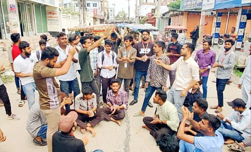 সোমবার (১২ মে) দুপুরে শহরের স্টেশন বাজার এলাকায় গেইটপাড় টু পাঁচরাস্তা মোড় অবরোধ করে এ আন্দোলন করে শিক্ষার্থীরা।