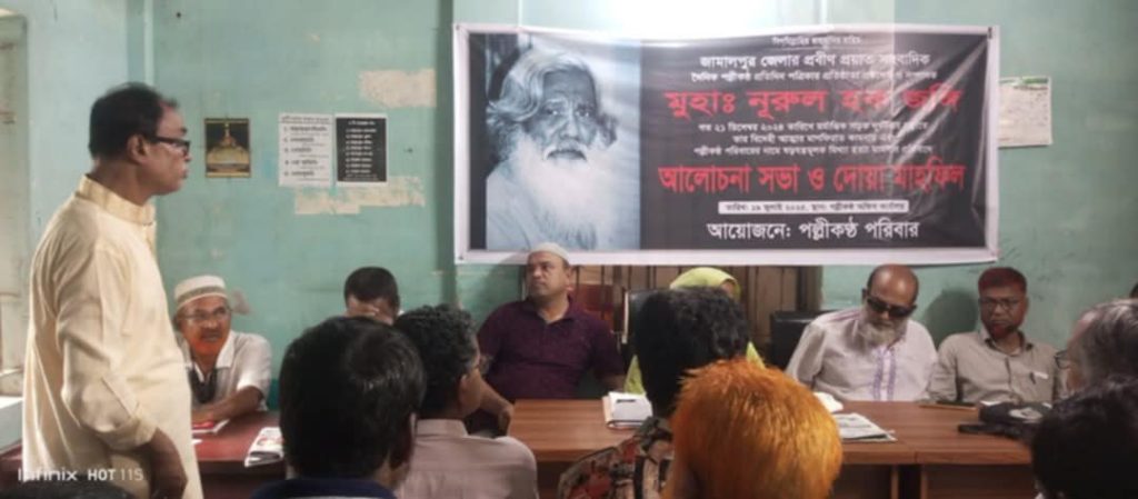 শনিবার (১৯ জুলাই) দুপুরে জামালপুর শহরের বাগানবাড়িস্থ পল্লীকন্ঠ পত্রিকার কার্যালয়ে এই সভা অনুষ্ঠিত হয়। প্রয়াত নূরুল হক জঙ্গির সহধর্মিণী খায়রুন নেসার সভাপতিত্বে সভায় বিভিন্ন সাংবাদিক, রাজনৈতিক নেতৃবৃন্দ এবং পত্রিকার শুভানুধ্যায়ীরা অংশ নেন।