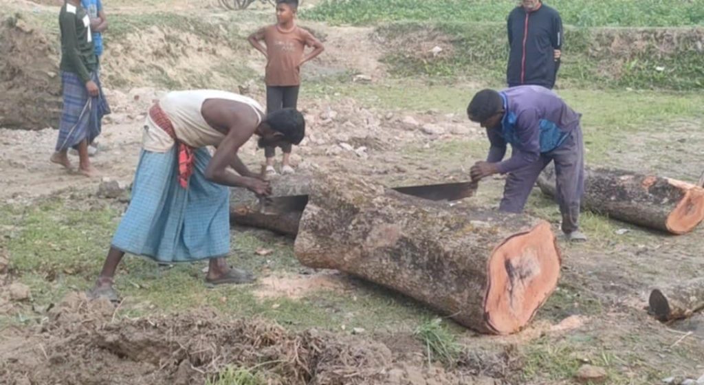 পরে আরও দুটি গাছ কাটার সময় সকাল হয়ে গেলে স্থানীয়রা বাধা দিলে তারা জানান পার্টি অফিসের আসবাবপত্র করার জন্য গাছগুলো কাটা হচ্ছে।
