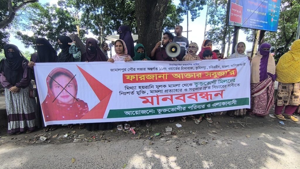 নিজস্ব প্রতিবেদক : জামালপুর পৌর শহরের বাগেরহাটা গ্রামের মামলাবাজ ফারজানা আক্তার সবুজার হাত থেকে রক্ষা পেতে ভুক্তভোগী পরিবারের মানববন্ধন ও জেলা প্রশাসক বরাবর স্মারকলিপি প্রদান হয়েছে।