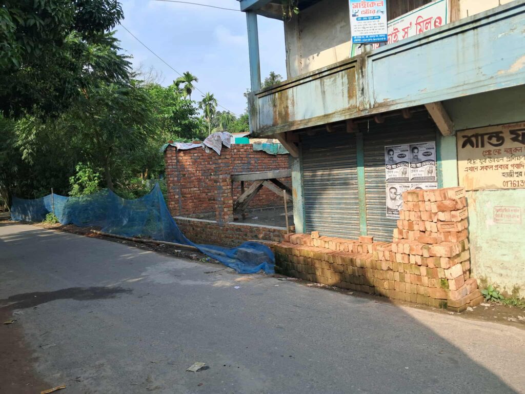 এই রাস্তা দখল করে বুলবুল মিয়া নামে একজন মাংস ব্যবসায়ী সম্প্রতি স্থাপনা নির্মান করছে।এতে ওই রাস্তা দিয়ে যান চলাচলে ভোগান্তি সৃষ্টি হয়েছে।