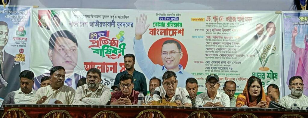 প্রধান বক্তার বক্তব্য রাখেন জেলা যুবদলের আহবায়ক শফিকুল ইসলাম খান সজীব।