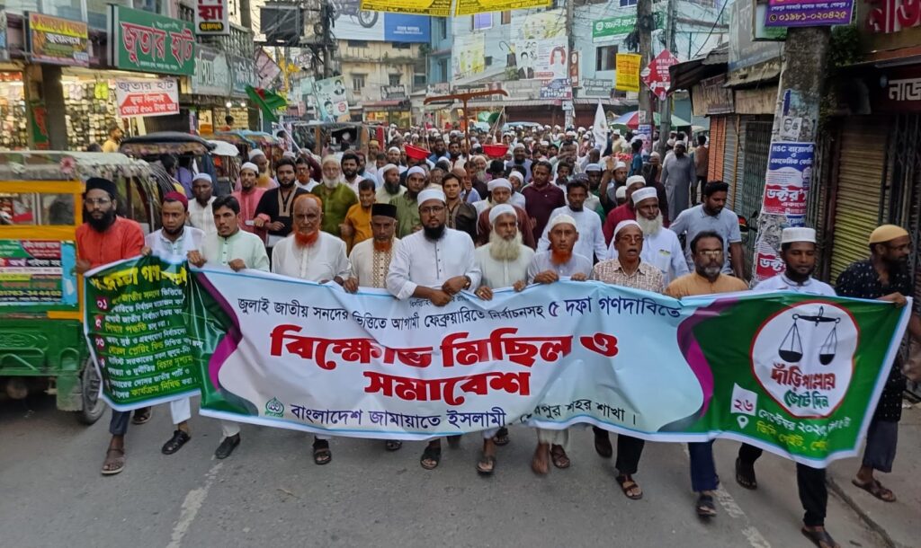 জামায়াতের ৫ দফা দাবিগুলো হলো- জুলাই জাতীয় সনদের ভিত্তিতে আগামী ফেব্রুয়ারিতে নির্বাচনের আয়োজন, আগামী জাতীয় নির্বাচনে উভয় কক্ষে পিআর পদ্ধতি চালু করা, অবাধ সুষ্ঠু ও গ্রহণযোগ্য নির্বাচনের লক্ষ্যে সকলের জন্য লেভেল প্লেয়িং ফ্লিড নিশ্চিত করা, ফ্যাসিস্ট সরকারের সকল জুলুম- নির্যাতন, গণহত্যা ও দুর্নীতির বিচার দৃশ্যমান করা, স্বৈরাচারের দোসর জাতীয় পার্টি ও ১৪ দলের কার্যক্রম নিষিদ্ধ করা।