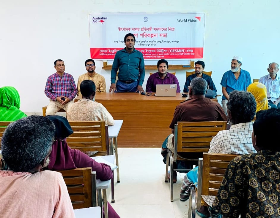 শরিফ মিয়া, ইসলামপুর : জামালপুরের ইসলামপুরে জেন্ডার ইনক্লুসিভ মার্কেট সিস্টেমস ফর ইম্প্রুভড নিউট্রিশন (GESMIN) প্রকল্পের উদ্যোগে উৎপাদক দলের প্রতিবন্ধী সদস্যদের নিয়ে ব্যবসা পরিকল্পনা সভা অনুষ্ঠিত হয়েছে।