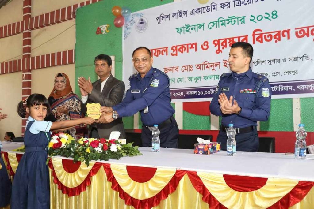 ২৮ ডিসেম্বর (শনিবার) সকাল ১১ টায় পুলিশ লাইন্স একাডেমি ফর ক্রিয়েটিভ এডুকেশনের অডিটোরিয়ামে প্রধান অতিথি হিসেবে উপস্থিত থেকে পরীক্ষার ফলাফল প্রকাশ করার পর কৃতি শিক্ষার্থীদের মাঝে মেডেল ও পুরস্কার বিতরণ করেন শেরপুর জেলার পুলিশ সুপার ও প্লেস এর সভাপতি মোঃ আমিনুল ইসলাম।