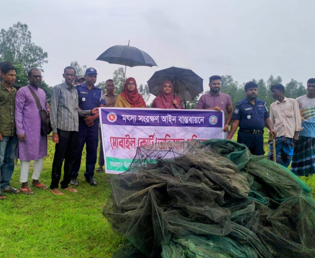 ইউনিয়ন ও সাধুরপাড়া ইউনিয়নের দশানী নদী থেকে গোপন সংবাদের ভিত্তিতে এসব জাল জব্দ করে ধ্বংস করা হয়। ভ্রাম্যমাণ আদালত পরিচালনা করেন সহকারী কমিশনার (ভূমি) ও নির্বাহী ম্যাজিস্ট্রেট আসমা -উল -হুসনা।