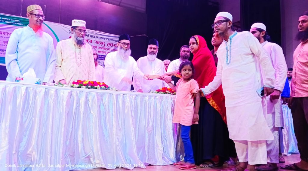 বাংলাদেশ জামায়াতে ইসলামী, জামালপুর জেলা শাখার আয়োজনে বৈষম্য বিরোধী ছাত্র-জনতার আন্দোলনে শহীদদের জন্য দোয়া ও তাদের পরিবারের সদস্যদের মাঝে আর্থিক সহযোগিতা প্রদান অনুষ্ঠান অনুষ্ঠিত হয়েছে।