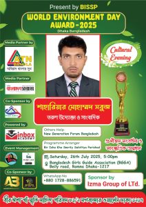ঢাকা প্রতিনিধি : পরিবেশ সংরক্ষণ ও সামাজিক উদ্যোগে গুরুত্বপূর্ণ অবদানের জন্য ব্যাচেলর’স জোন (Bachelors Zone)-এর প্রতিষ্ঠাতা ও তরুণ সাংবাদিক শাহারিয়ার মোহাম্মদ সবুজ-কে “বিশ্ব পরিবেশ দিবস সম্মাননা অ্যাওয়ার্ড ২০২৫”-এ ভূষিত করা হচ্ছে।