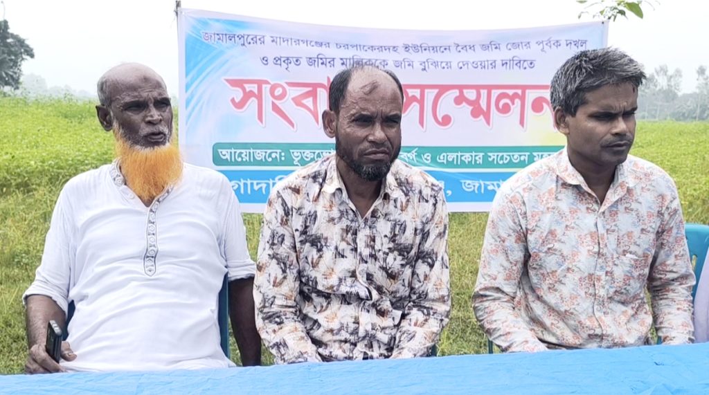 নিজস্ব প্রতিবেদন : জামালপুরের মাদারগঞ্জ চরপাকেরদহ ইউনিয়নে বৈধ জমি জোর পূর্বক জমি দখল ও প্রকৃত জমির মালিককে জমি বুঝিয়ে দেওয়ার দাবীতে সংবাদ সম্মেলন অনুষ্ঠিত হয়েছে।