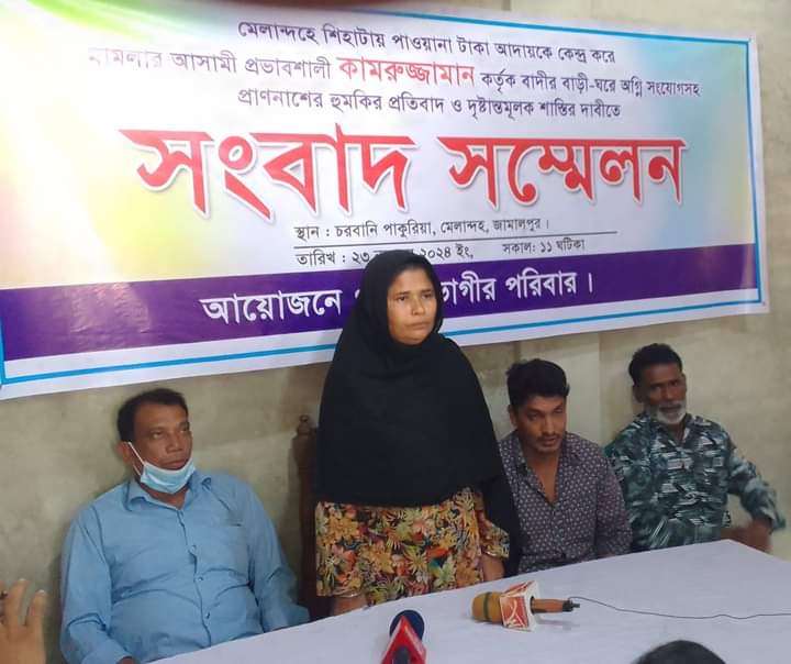 মেলান্দহে মামলার বাদীনির বাড়িতে প্রাণনাশের ও বাড়ীতে অগ্নিসংযোগ দেওয়ার হুমকির প্রতিবাদে সংবাদ সম্মেলন।