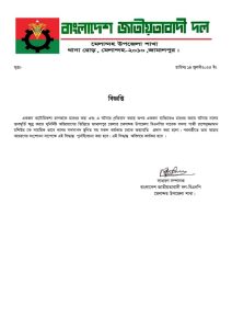 গত ১৪ জুলাই মেলান্দহ উপজেলা বিএনপির সাধারণ সম্পাদক মুন্জুরুল কবীর মন্জুর স্বাক্ষরিত এক প্রেস বিজ্ঞপ্তিতে এক পত্রে এই তথ্য নিশ্চিত করা হয়েছে।