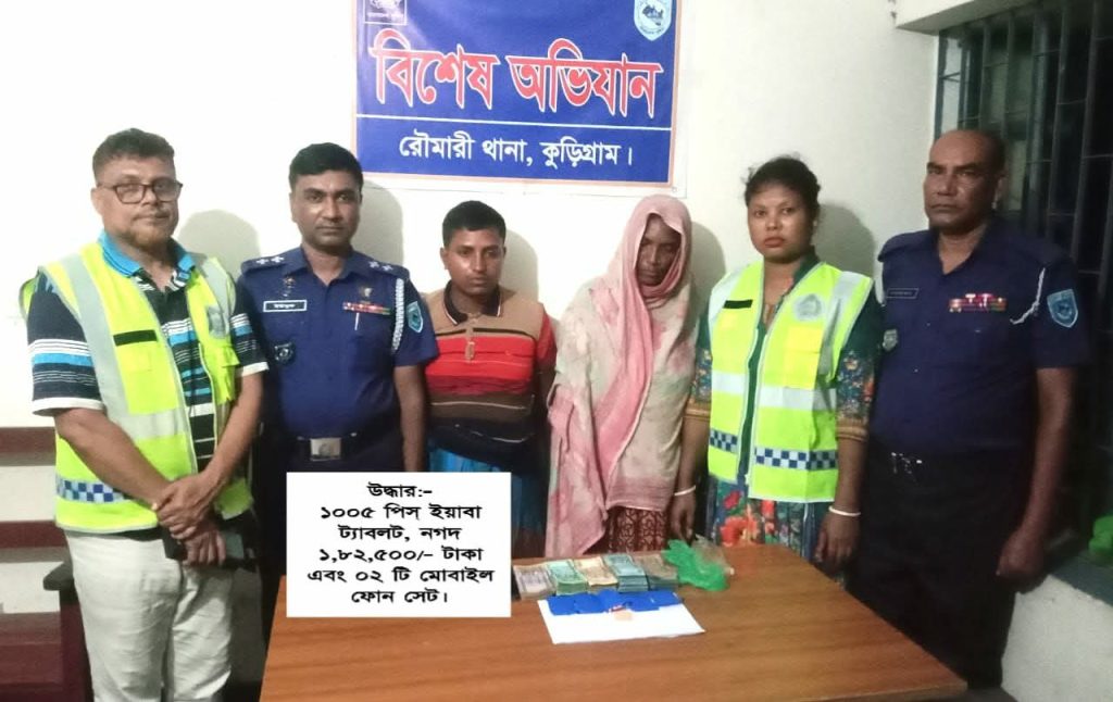রৌমারীতে ১ হাজার ৫ পিস ইয়াবা,নগদ টাকাসহ জামাই শ্বাশুরী আটক