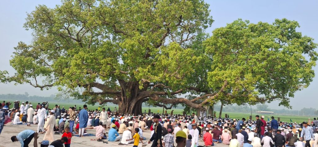 শত বছরের পুরানো এই ঈদগাহ মাঠটি জুড়ে রয়েছে দৃষ্টি নন্দন পুরানো একটি বটবৃক্ষ। পুরো মাঠটি জুড়ে ছায়ায় বেষ্টতি রয়েছে এই বটবৃক্ষটি। জানা যায় কয়েকশতক বছরের পুরানো এই বটবৃক্ষটি এভাবেই কালের সাক্ষী হয়ে রয়েছে ঈদ জামাত অনুষ্ঠিত হওয়ার মধ্যে দিয়ে ।