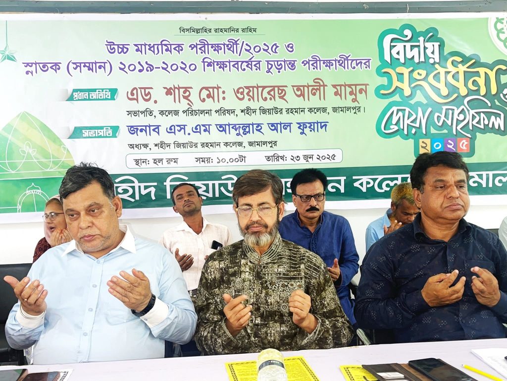 নিজস্ব প্রতিবেদক : জামালপুর শহীদ জিয়াউর রহমান কলেজে উচ্চ মাধ্যমিক ও স্নাতক(সন্মান)২০১৯-২০২০ শিক্ষাবর্ষের চুড়ান্ত পরীক্ষার্থীদের বিদায় সংবর্ধনা ও দোয়া মাহফিল অনুষ্ঠিত হয়েছে।