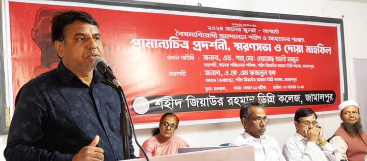 বুধবার সকালে জামালপুর শহীদ জিয়াউর রহমান ডিগ্রি কলেজ আয়োজিত কলেজ মিলনায়তনে প্রামাণ্য চিত্র প্রদর্শনী, স্মরণ সভা দোয়া মাহফিলে প্রধান অতিথি হিসেবে বক্তব্য রাখেন কলেজ পরিচালনা পরিষদের হিতৈষী সদস্য ও জামালপুর জেলা বিএনপির সিনিয়র যুগ্ম সাধারণ সম্পাদক শহীদুল হক খান দুলাল।