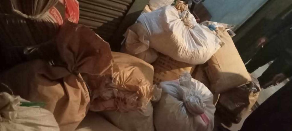 শেরপুরে প্রায় ৬শ’ (৫৪৬.৮০) কেজি নিষিদ্ধ পলিথিন ব্যাগ জব্দ।