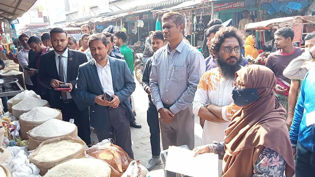 আজকে বাজারে ঘুরে ঘুরে মূল্য তালিকা টানানো আছে কিনা, নিষিদ্ধ পলিথিন ব্যবহার হচ্ছে কিনা, পাটের বস্তা ঠিকমতো ব্যবহার হচ্ছে কি না, ওজন ঠিক আছে কি না- সেগুলো পরীক্ষা করা হয়েছে।