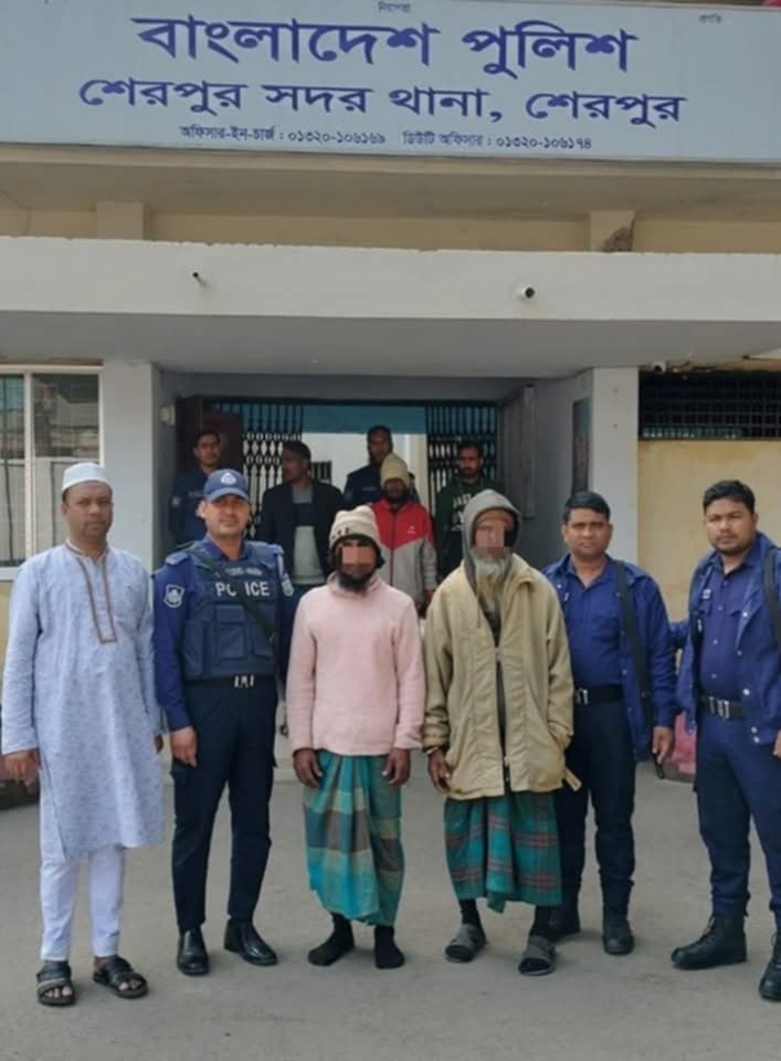 আজমত আলী, পিতামৃত- আজগর আলী, প্রসেস নং-৮৫/২৫, ২। ফজলুল হক (ফজু) পিতা- নিজাম উদ্দিন, উভয় সাং- রৌহা চরপাড়া, থানা- শেরপুর সদর, জেলা- শেরপুরদ্বয়কে তাহাদের নিজ বাড়ি হইতে গ্রেফতার করেছে শেরপুর সদর থানা পুলিশ।