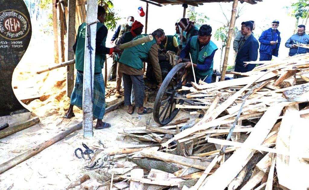 শ্রীবরদীতে অবৈধ করাত কল বন্ধে উচ্ছেদ অভিযান, ৪ করাত কলের যন্ত্রাংশ ও অবৈধ কাঠ জব্দ