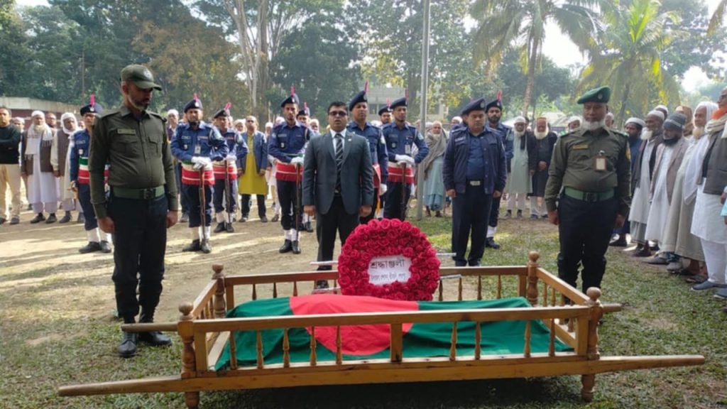 এ সময় উপজেলা প্রশাসনের পক্ষ থেকে মরহুমের কফিনে ফুল দিয়ে শ্রদ্ধা নিবেদন করেন উপজেলা মুক্তিযোদ্ধা সংসদের প্রশাসক ও উপজেলা নির্বাহী অফিসার শেখ জাবের আহাম্মেদ।