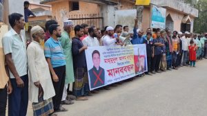 সাংবাদিক নাদিম হত্যা মামলার প্রধান আসামি গ্রেপ্তারের দাবিতে বকশীগঞ্জে মানববন্ধন