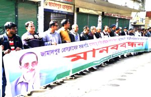 নিজস্ব প্রতিবেদক: জামালপুর প্রেসক্লাবের সভাপতি চ্যানেল আই এর সাংবাদিক হাফিজ রায়হান সাদা’র বিরুদ্ধে স্বেচ্ছাসেবক লীগ নেতার স্ত্রীর দায়েরকৃত মিথ্যা মামলা প্রত্যাহার ও যথাযথ প্রতিকারের দাবিতে