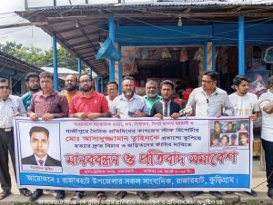 মোঃ বুলবুল ইসলাম, কুড়িগ্রাম প্রতিনিধিঃ গাজীপুরে সাংবাদিক আসাদুজ্জামান তুহিন হত্যার প্রতিবাদে রাজারহাটের সকল সাংবাদিকগণের ব্যানারে মানববন্ধন ও প্রতিবাদ সভা অনুষ্ঠিত হয়েছে। বৃহঃবার (১৪ আগস্ট) দুপুরে