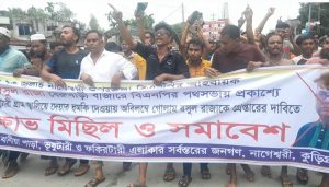 কুড়িগ্রাম প্রতিনিধি : কুড়িগ্রামের নাগেশ্বরী উপজেলার গোলাম রসুল রাজাকে গ্রেফতারের দাবিতে এক বিক্ষোভ মিছিল ও সমাবেশ অনুষ্ঠিত হয়। ২৭ জুলাই দুপুরে নাগেশ্বরী পৌরসভার ঈদগাহ মাঠ